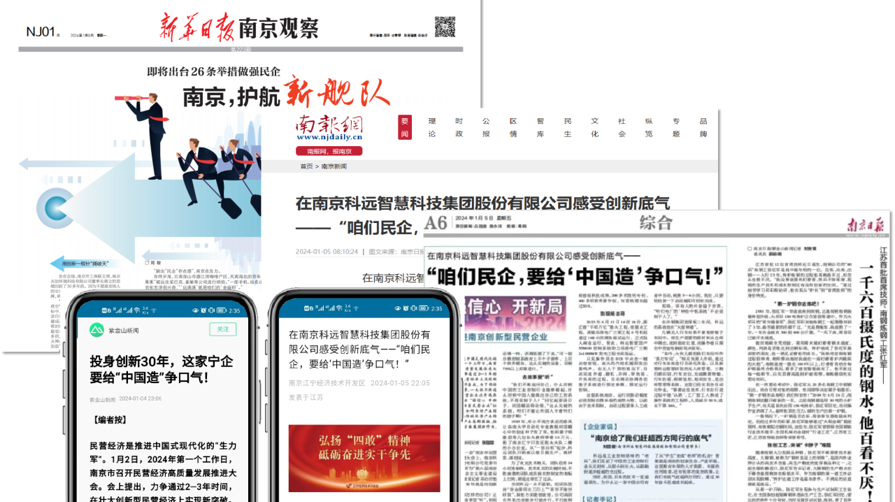 民营经济是推进中国式现代化的生力军。2024年第一个工作日,南京市召开民营经济高质量发展推进大会。会上提出,力争通过2—3年时间,在壮大创新型民营经济上实现新突破。久久为功,善作善成。为了将壮阔蓝图绘就生动实景,一大批不断追求卓越的创新型民营企业正奔跑在路上。其中,科远智慧勇当产业创新“排头兵”,在参与传统优势产业转型升级、推动新兴产业集群强链、抢占新领域新赛道等方面展现新作为、创造新业绩,受到新华日报、南京日报、南报网、紫金山观察、南京江宁经济技术开发区等众多官媒竞相关注。▼以下内容转载自 南京日报/紫金山新闻 记者 张甜甜在今年“新年第一会”南京市民营经济高质量发展推进…