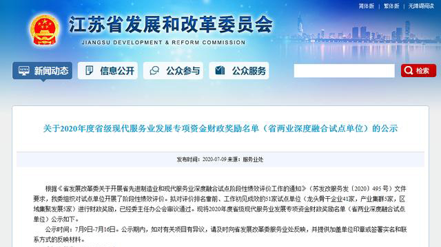勇立潮头御风行 “两业融合”江苏先经过一年时间融合实践,近日,江苏省发展改革委公布了江苏两业深度融合试点阶段性成绩报告:经过严格的实地考核评分,从列入省龙头骨干企业试点单位的123家企业中评选出41家成绩突出的优秀试点单位,并给予专项资金奖励,科远智慧荣列其中。两业深度融合是增强制造业核心竞争力、培育现代产业体系、实现高质量发展的重要途径。2019年9月,江苏省发改委积极落实中央深改委第十次会议精神和省委、省政府决策部署,出台了《关于组织开展江苏省先进制造业和现代服务业深度融合试点工作的通知》,以制造强省建设为目标,以生产性服务业发展为主攻方向,组织开展全省先进制造业和现代服务业深… -